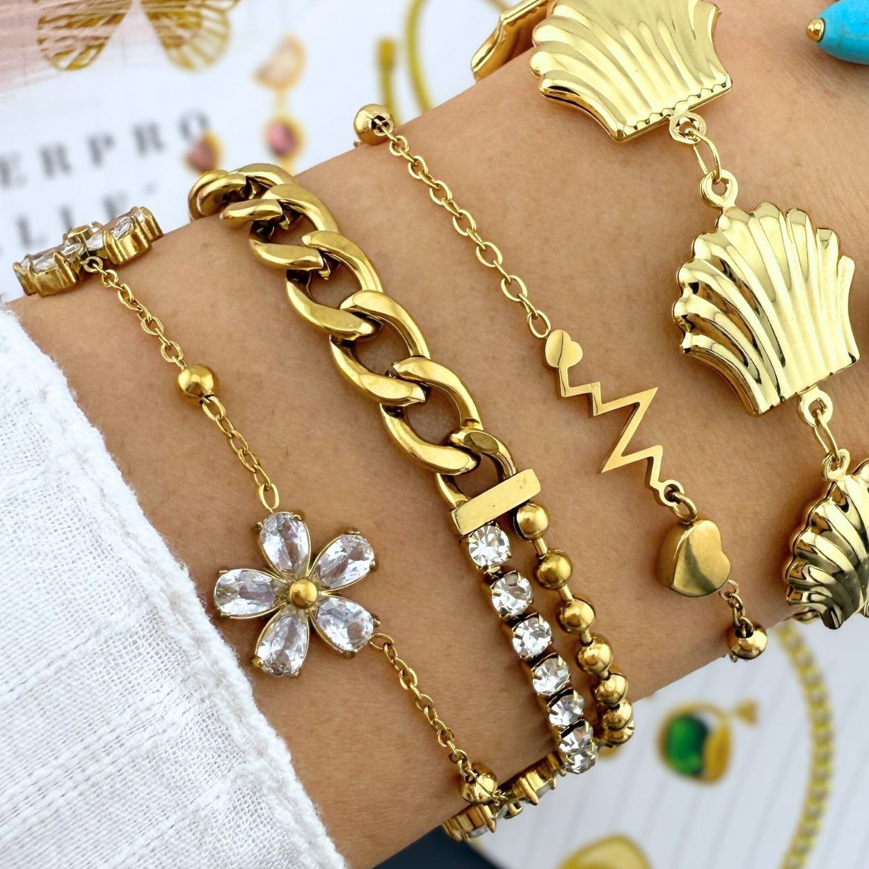 The Flower Bracelet features elegant stone flowers and is crafted with 18k gold plating. It is designed to be waterproof, ensuring durability and resistance to tarnishing. Hypoallergenic materials provide comfort for sensitive skin, making it a suitable choice for daily wear. This piece is increasingly sought after in the jewelry market.